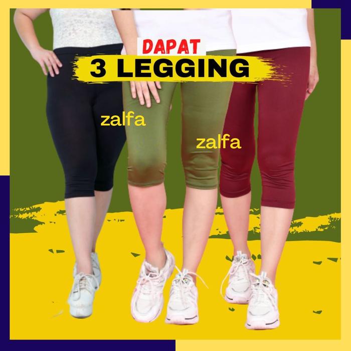 3Pcs Legging Pendek 7/8 - Celana Lejing Selutut 3/4 Bahan Spandek Jersey Licin Elastis Hitam Polos Olahraga Senam Sport