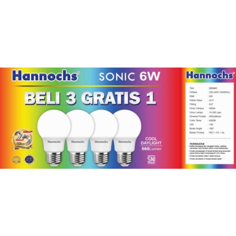 Lampu Led Bohlam Paket Hemat (BELI 3 GRATIS 1) HANNOCHS SONIC 6w / 10w / 13w / 18w Watt PUTIH / KUNING ORIGINAL