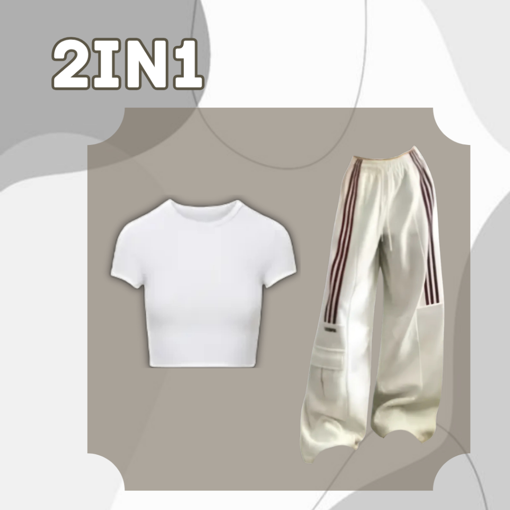 One Set 3in1 Sporty Wanita | Crop Top Putih Zipper Serut Cream Swatpant Cargo Putih | OOTD SLN120