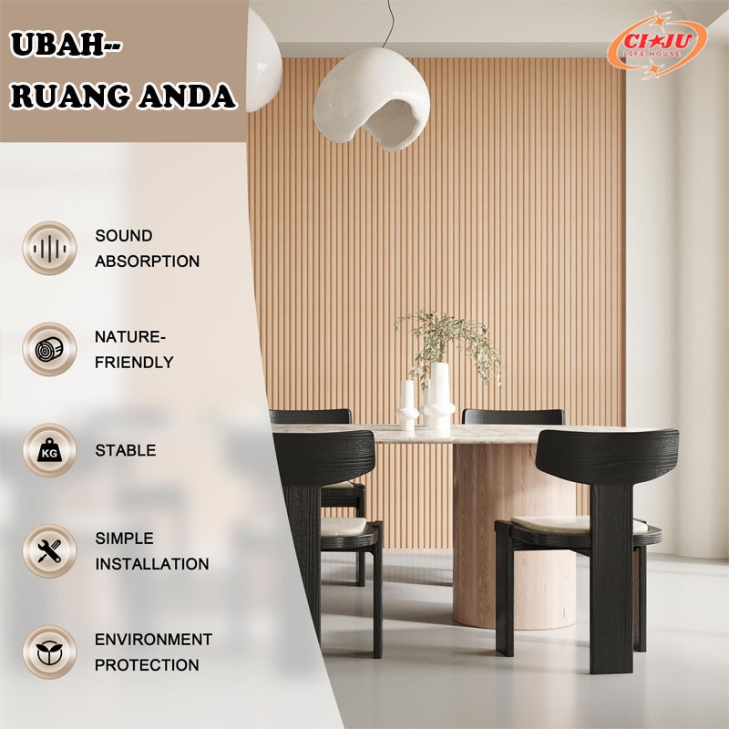 2.9Meter x16cm Wpc Wall Panel Anti Rayap Dan Tahan Air Wall Panel Hiasan Dinding 3D Wood Panel Wpc Kamar Tidur Wall Panel Pvc / Wallpanel Pvc Dinding