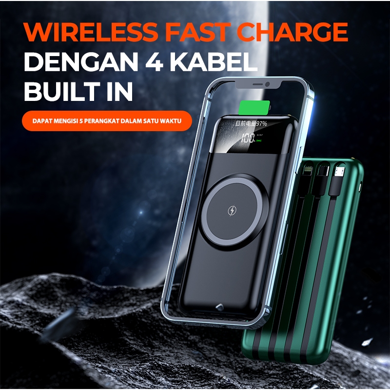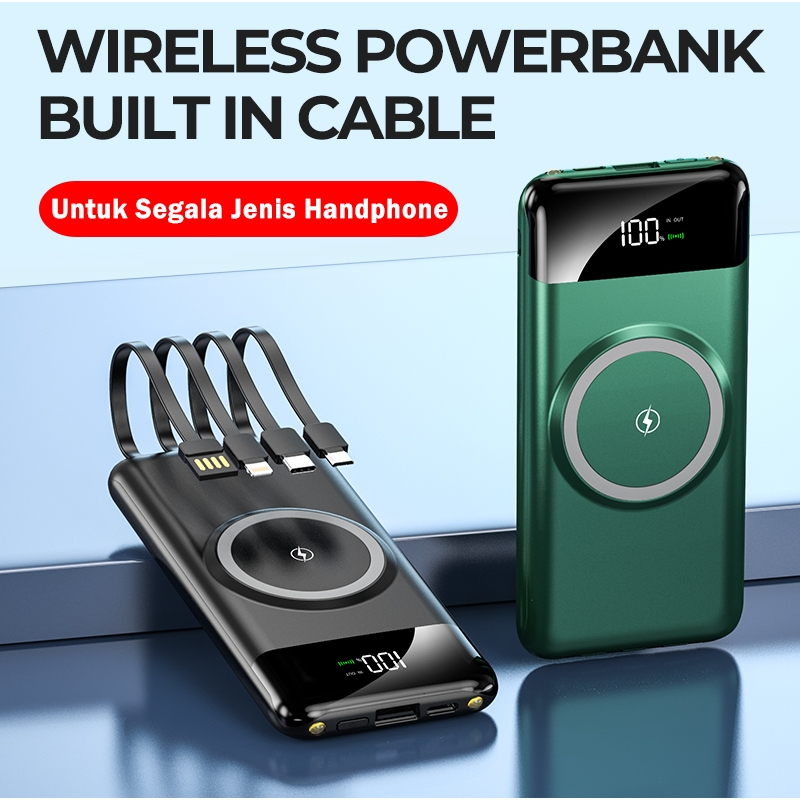 SUTU Wireless Powerbank 20000mAh Built in Cable Kompatibel dengan semua ponsel Fast Charging Kabel bawaan Type-C Micro USB iOS/Lightning