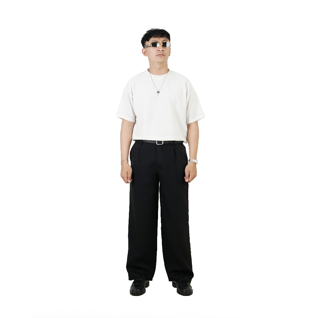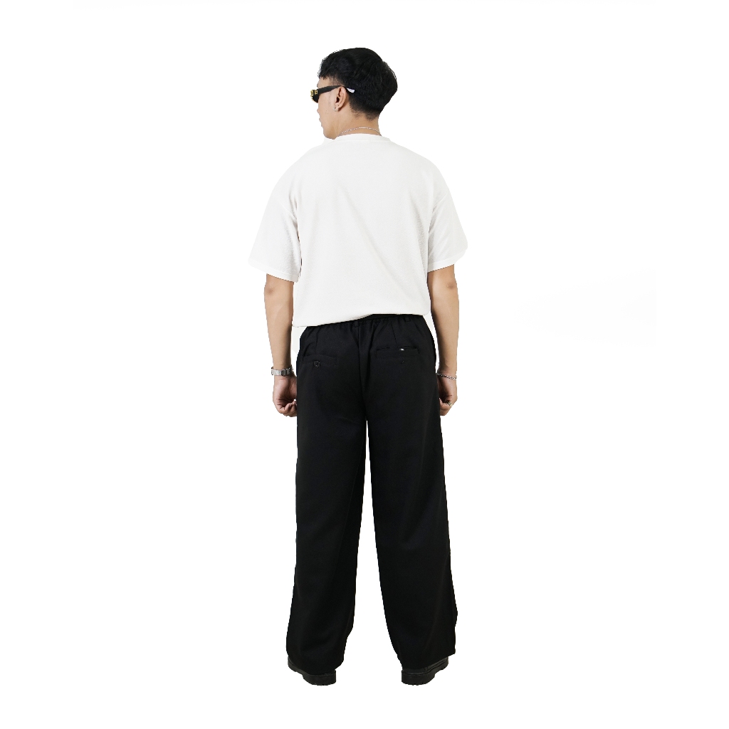 Jinsyou - Celana Trouser Wide Pants Pria Hitam Cream Coffe Loose Relaxed Pinggang Karet