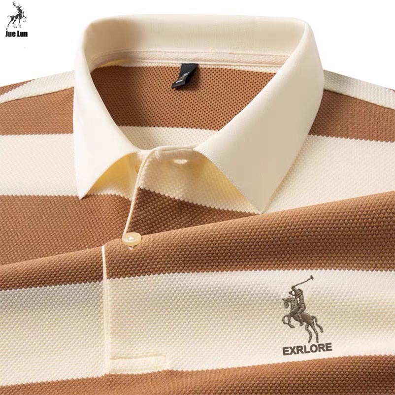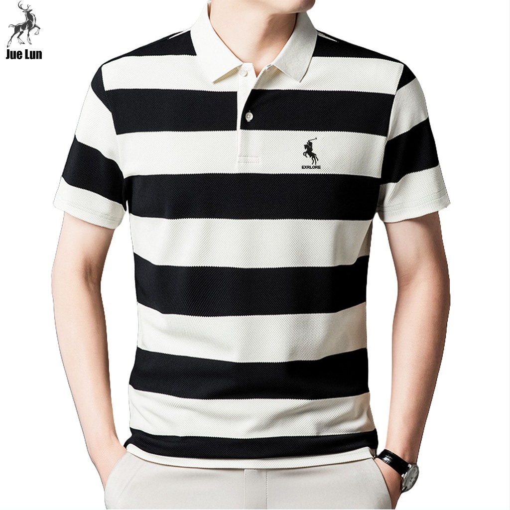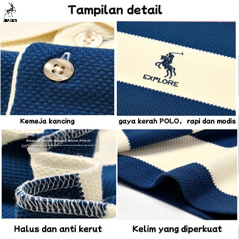 Jue Lun Polo Shirt Pria Kemeja Bergaris Pria Kaos Kerah Bergaris Pria Kaos Modis