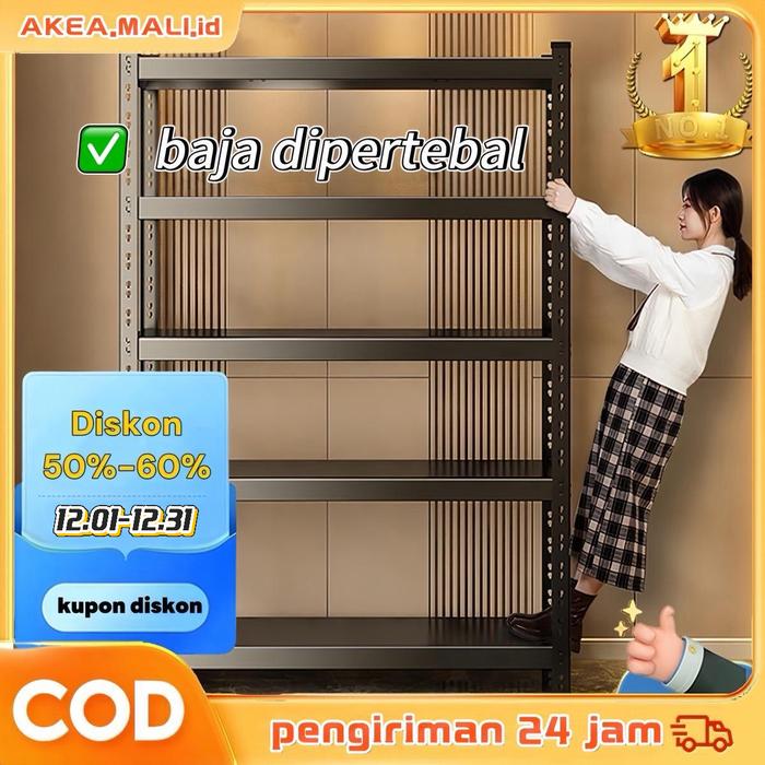 Ak Rak Susun Besi Siku 5 Susun Anti Karat Baja Carbon Tebal 1.5Mm Kapasitas Besar Desain Snap-On Struktur Terbuka Multi-