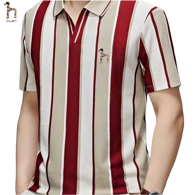 Olet Polo Shirt Pria original kaos polo garis baju kaos pria bordir Kemeja POLO bergaris vertikal kaos pria keren