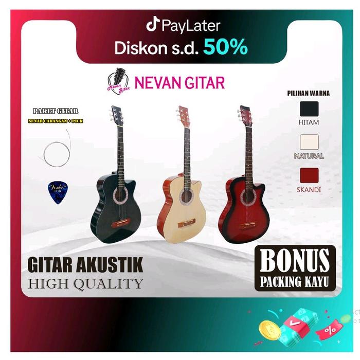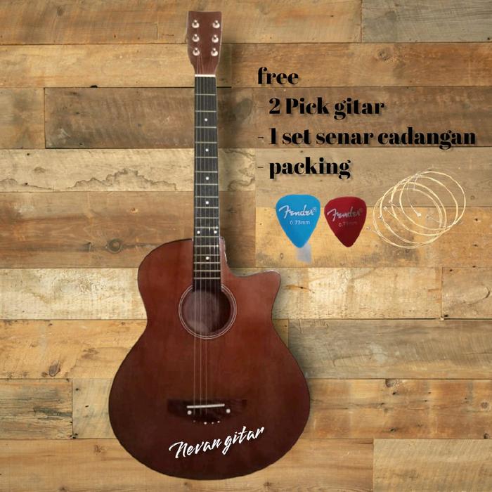 NEVAN GITAR AKUSTIK PEMULA TERMURAH BODY FUL MRANTI NECK MAHOGANY SUPER FRET KUNINGAN BONUS SENAR CADANGAN PICK CANTIK D