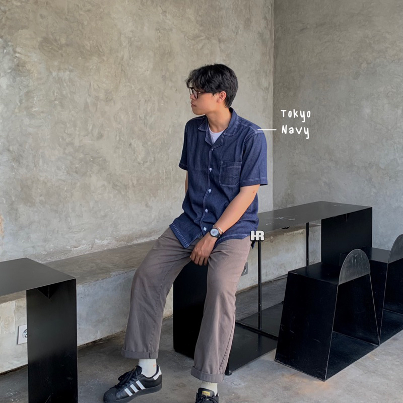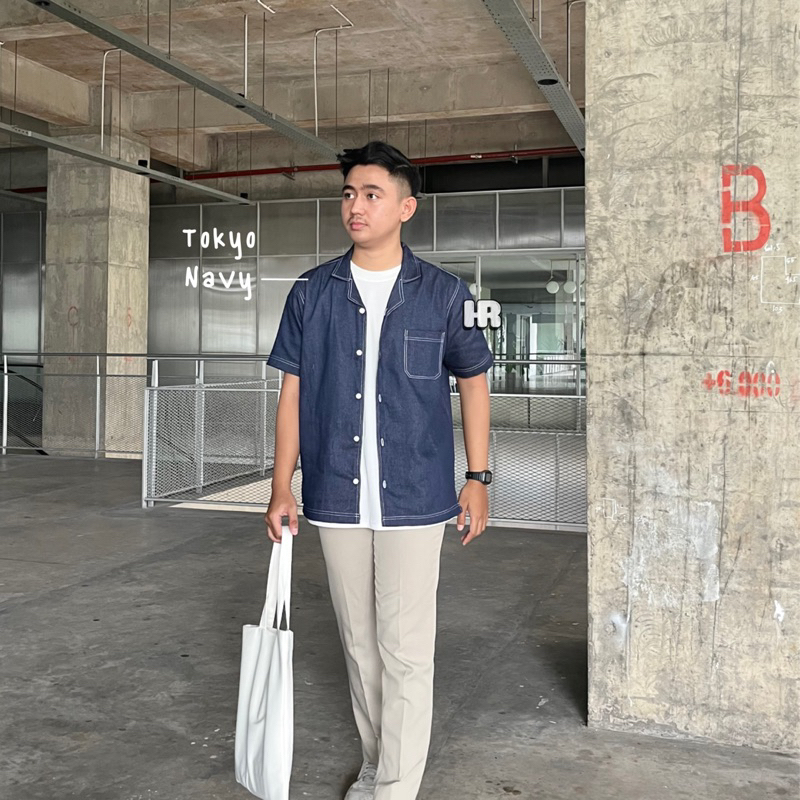 Kemeja - Denim - Kerah Terbuka - Lengan Pendek - Tokyo