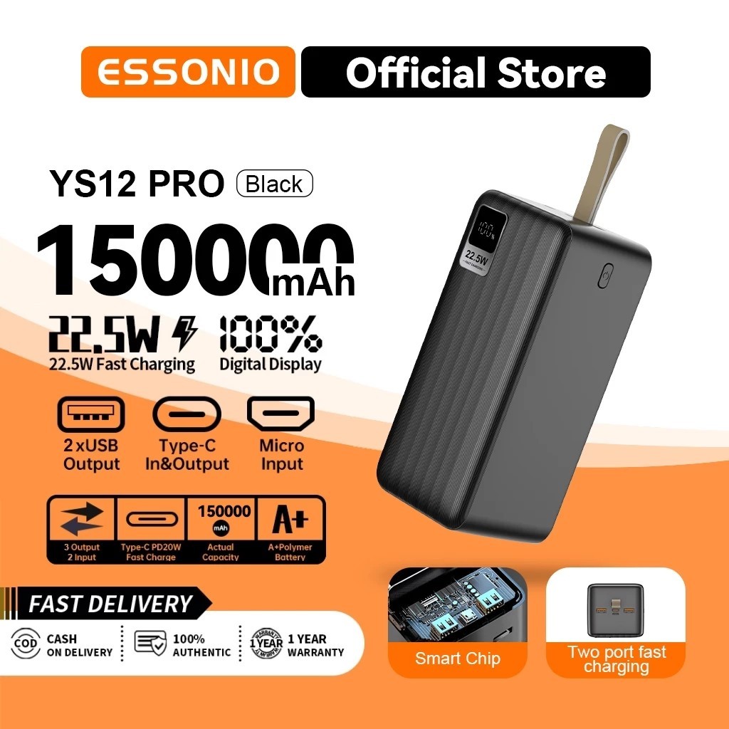 ESSONIO 60000mah PowerBank Digital Display YS7 PRO Dual Input and Output Port Type C & Micro USB Original 22.5W Fast Charging Real Capacity - Garansi Resmi 1 Tahun