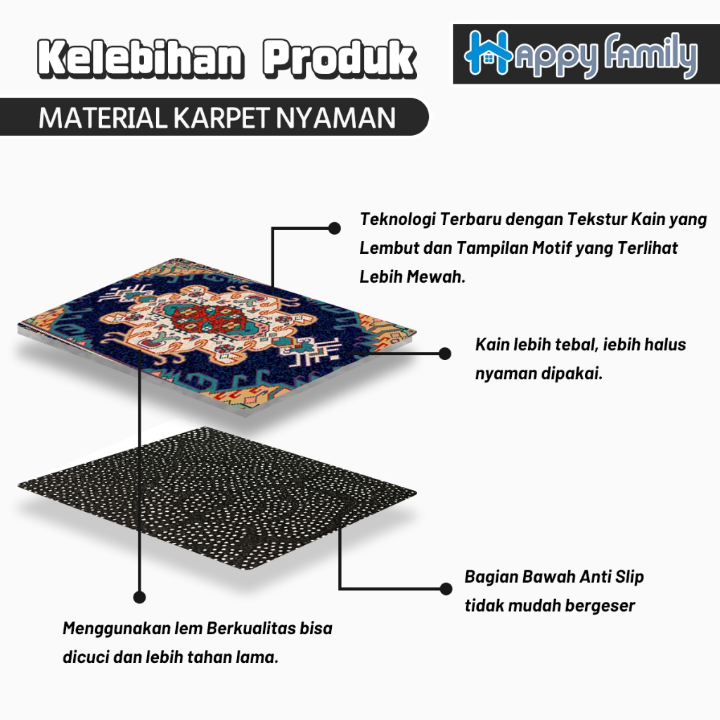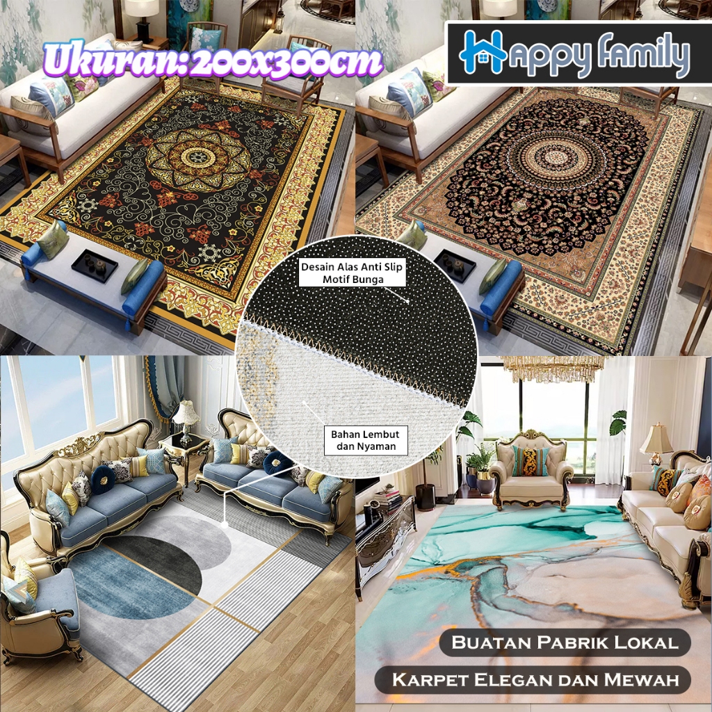 Lokal Karpet Lantai Permadani Eropa PREMIUM 200x300CM Polyester Anti Slip Ruang Tamu
