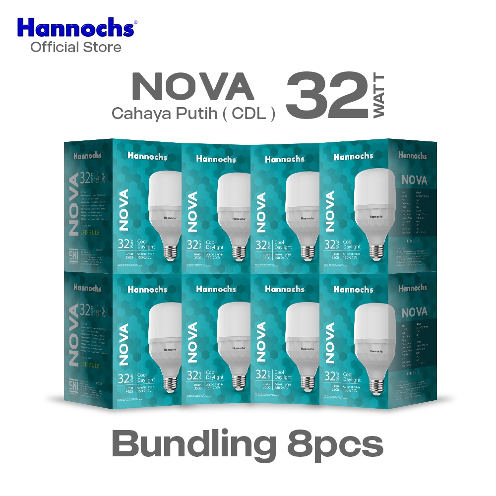 Hannochs Lampu Bohlam LED Nova 32W Cahaya Putih Paket isi 8pcs
