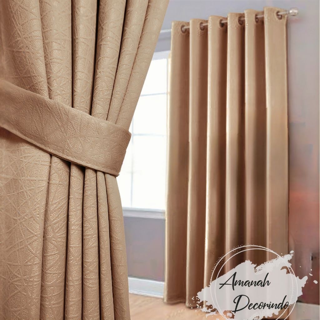Gorden Jendela Tinggi 3 Meter Blackout Polos Embos 12 Ring Smokring