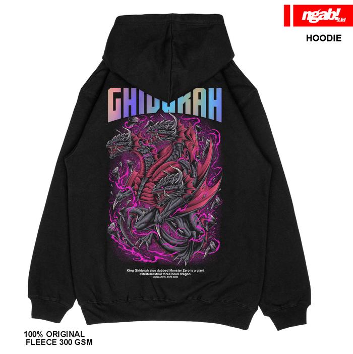 (Gratis, Stiker, Lanyard) Ngab Hoodie Jumper Sablon Reflective Rainbow King Ghidorah Hd013 Hitam Unisex Cowok Cewek Pri