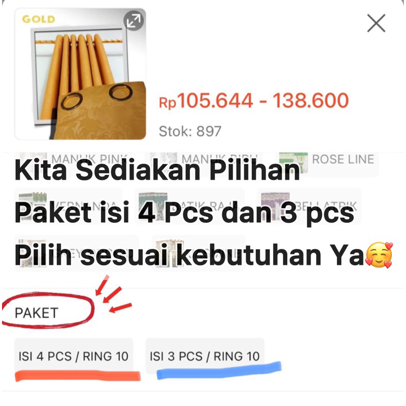 PROMO 4 PCS GORDEN JENDELA DAN PINTU MINIMALIS SMOKRING 10 LUBANG TERLARIS