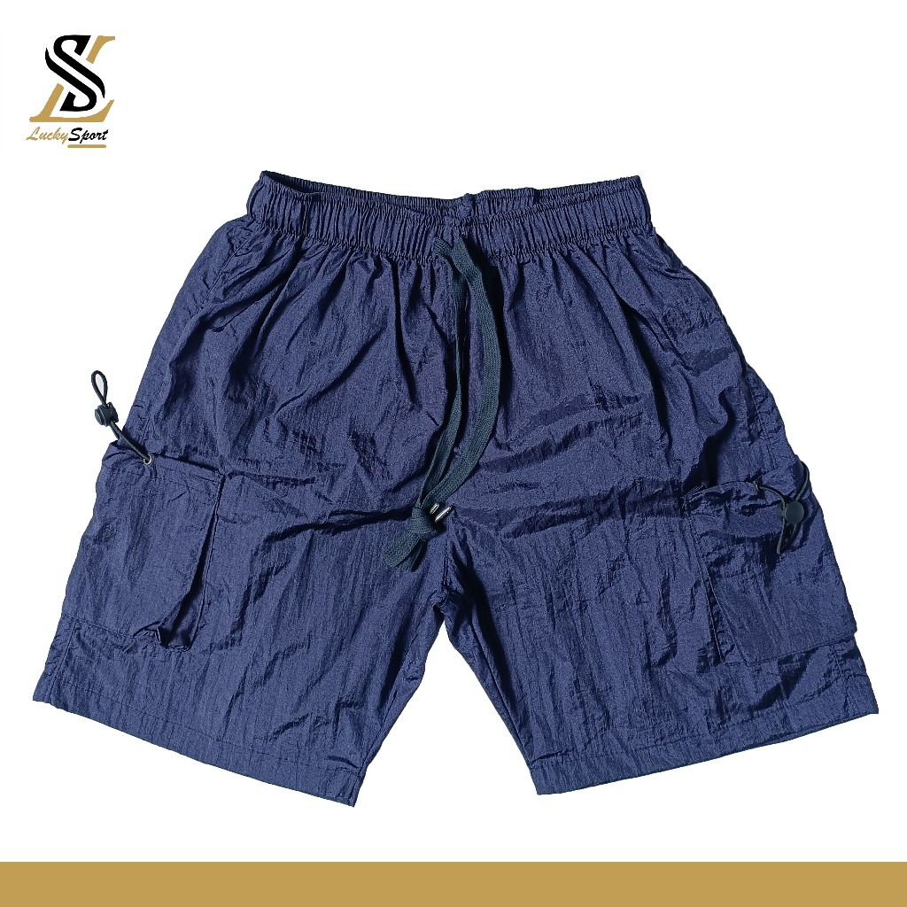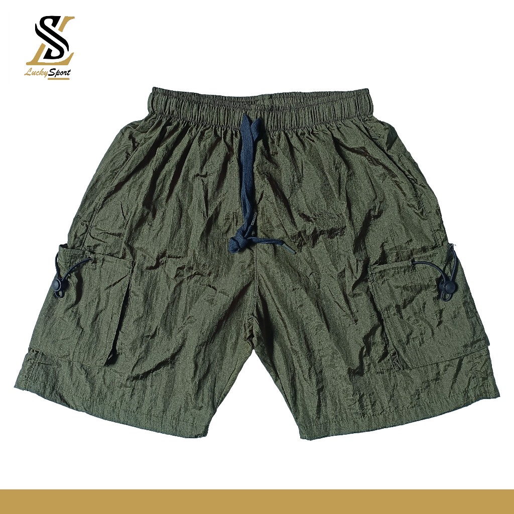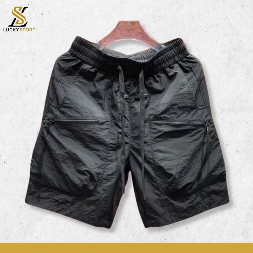 Celana Pendek Cassual Sporty Nylon Shorts Crinkle Cargo Pria Wanita Premium Kusut Murah Gratis Ongkir