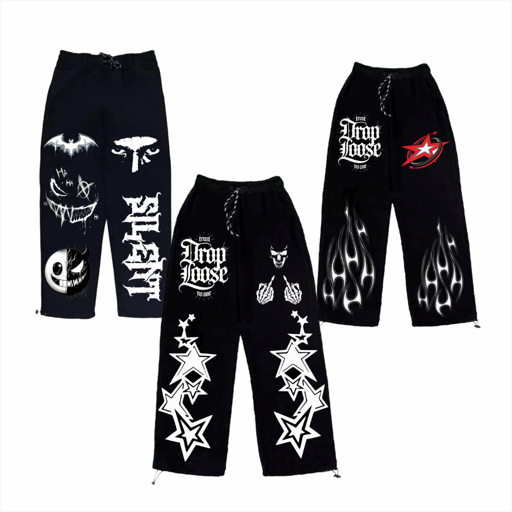Celana Skena Anak Baggy Laki-laki Perempuan Usia 4-13 Tahun Motif Skull dan Bintang Murah Gratis Ongkir