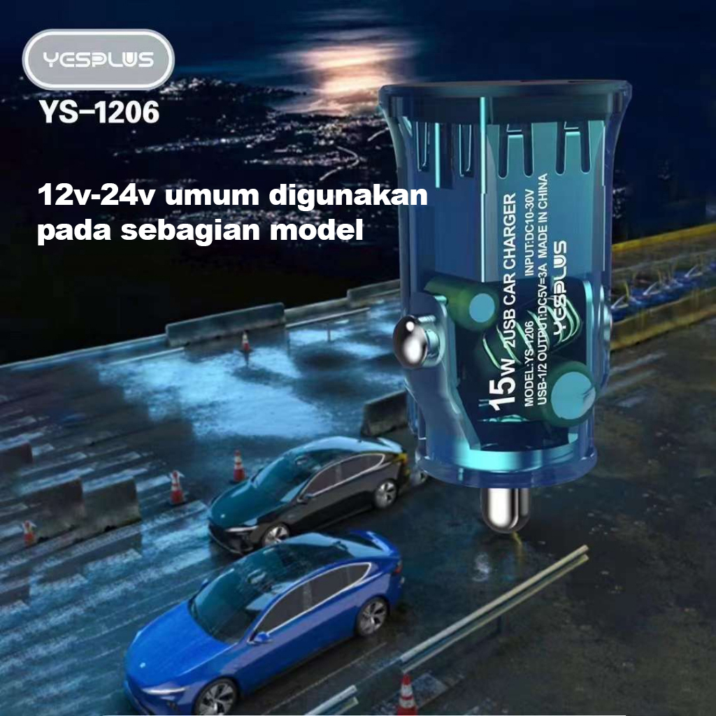 [PROMO] YESPLUS YS1206 New Saver Car Charger Transparent Two USB 3A 15W