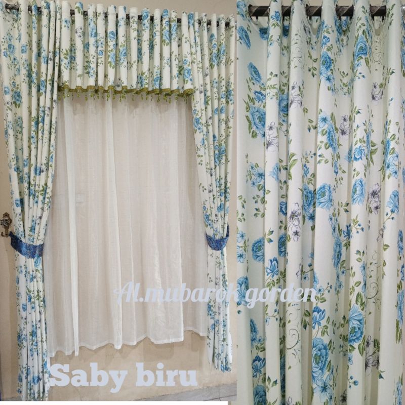 Gorden Paket 1 Set Dan Poni Untuk Jendela Pintu Motif Tulip Poni Loster Atas Pintu Gorden Import