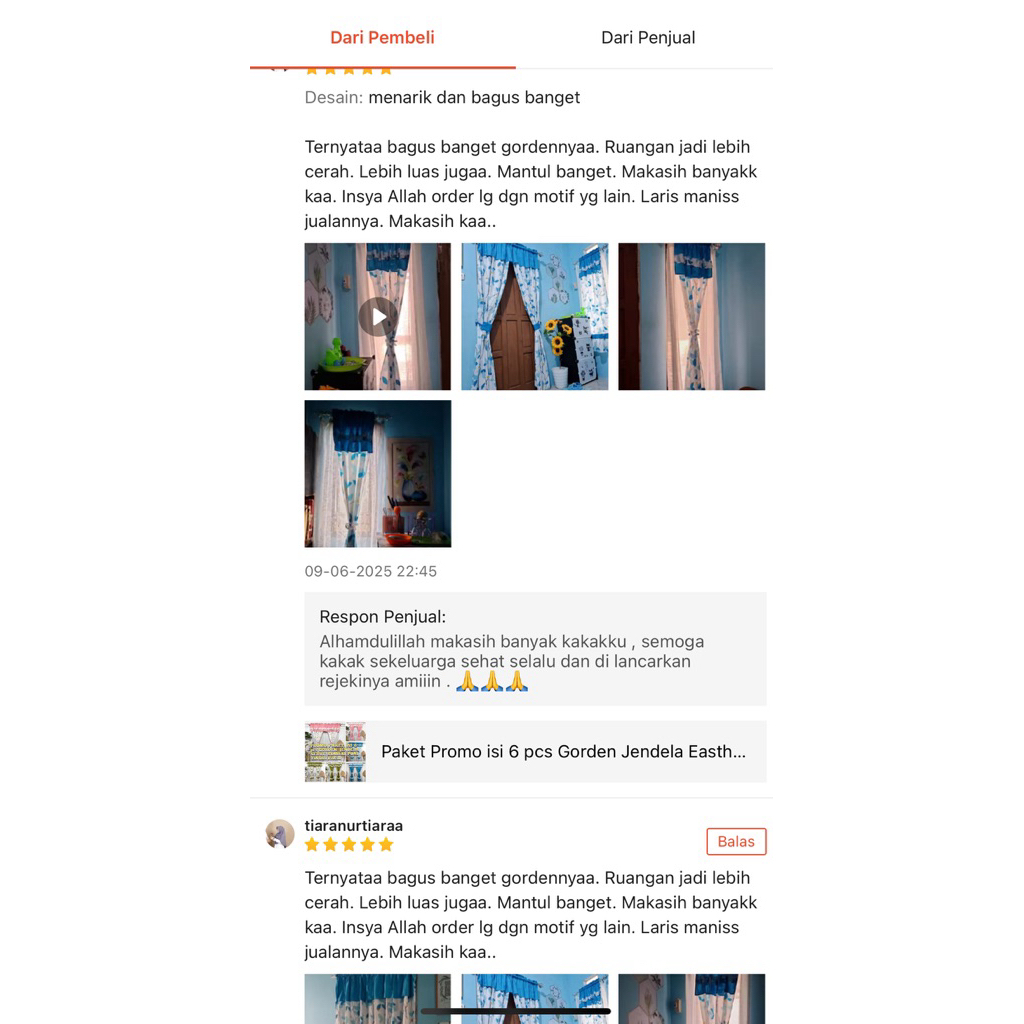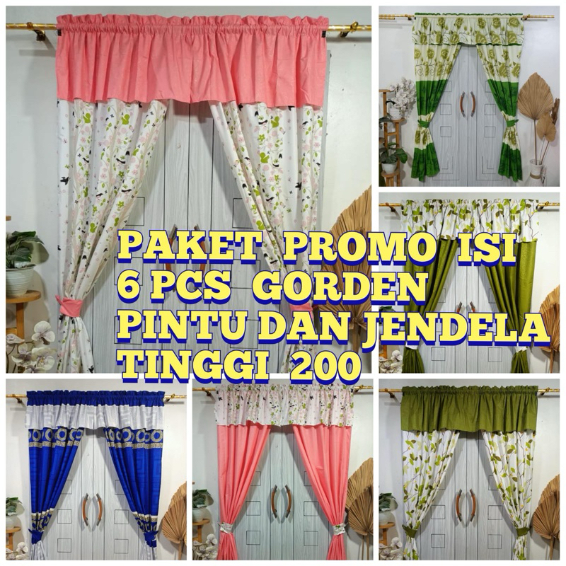 Paket Promo 6 pcs Gorden pintu dan Jendela Panjang Aesthetic ukur 80cm x 200cm
