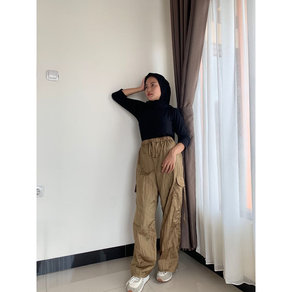 Celana panjang cargo wanita Parasut korean look Murah Gratis Ongkir