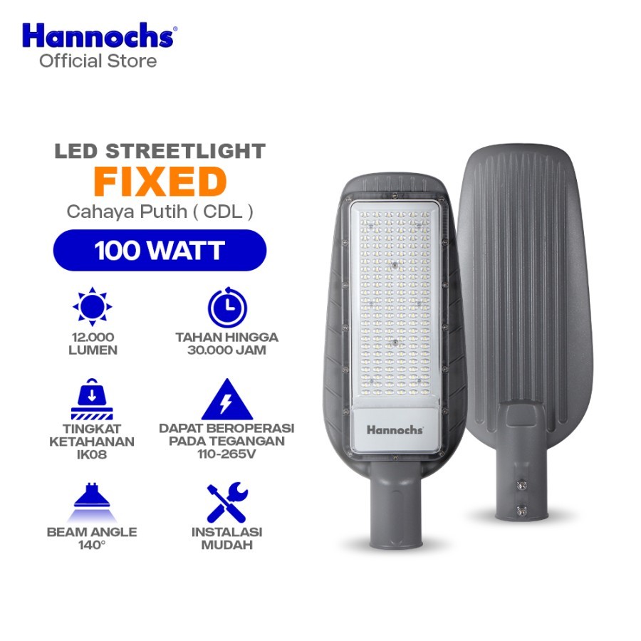 Hannochs Lampu Jalan Outdoor LED Streetlight Fixed 100W Cahaya Putih PJU / Lampu Jalan Hannochs 100W / Lampu PJU Hannochs 100W