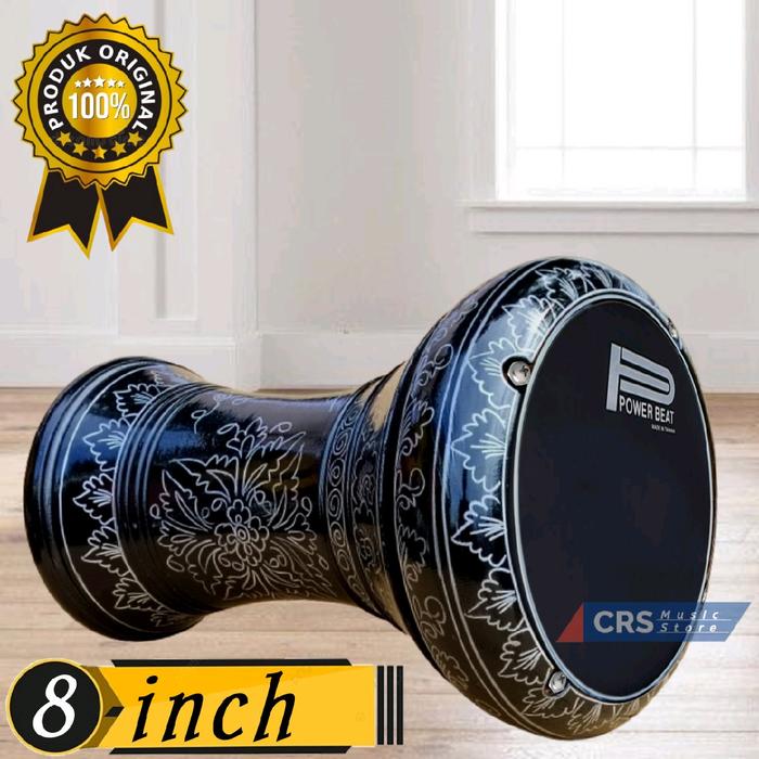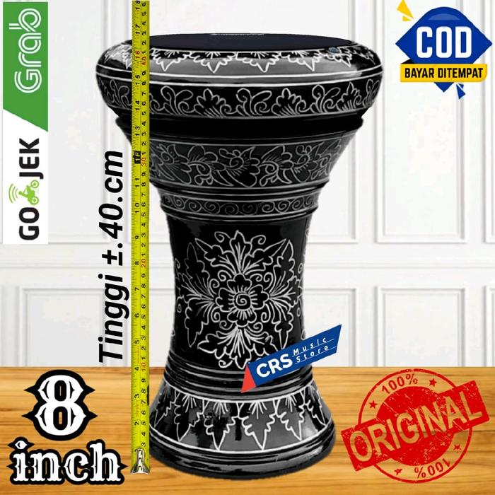 DARBUKA KAYU 8 INCH HITAM SILVER MIKA HITAM - DUMBUK SAJA