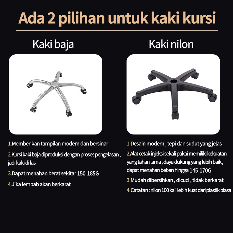 putih+bantal , hitam+bantal, Merah Baja, Merah Nilon , Merah Baja Footrest, Merah Nilon Footrest , Hitam Baja , Hitam Nilon, Hitam Baja Footrest , Hitam Nilon Footrest, Biru Baja, Biru Nilon, Pink Baja , Pink Nilon, Pink