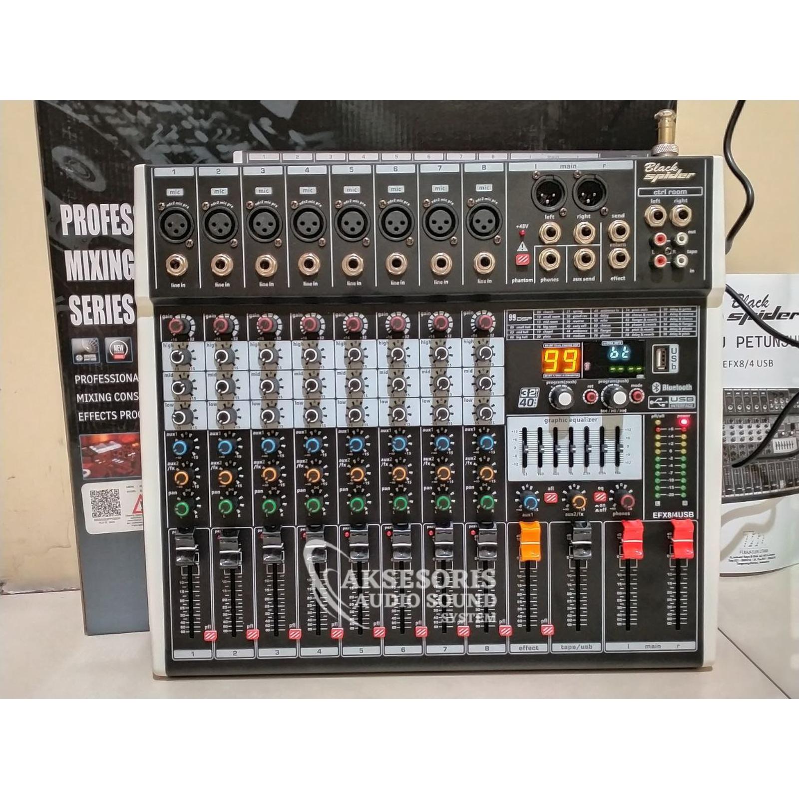 Mixer Black Spider EFX 8 Channel Efek Digital Reverb 99 Dsp USB Bluetooth