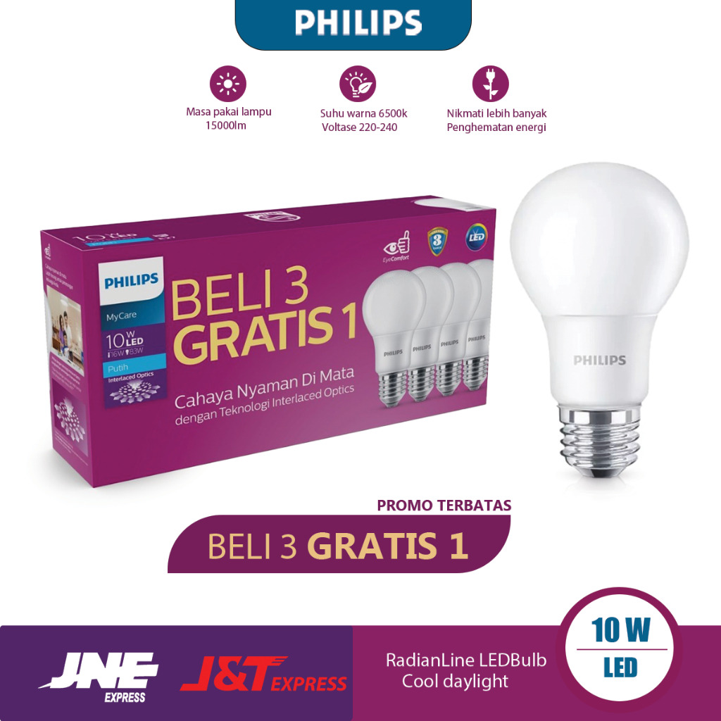 【 Beli 3 gratis 1】Lampu LED Philip Paket 5W 6W 7W 8W 9W 10W 11W 12W 13W 14,5W 15Watt Multipack Lampu led rumah Led Putih Bulb 6500K
