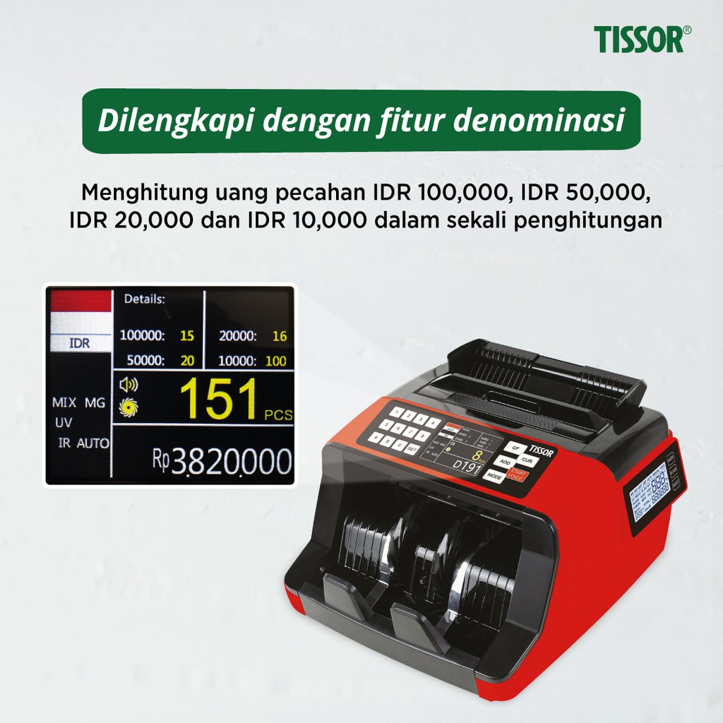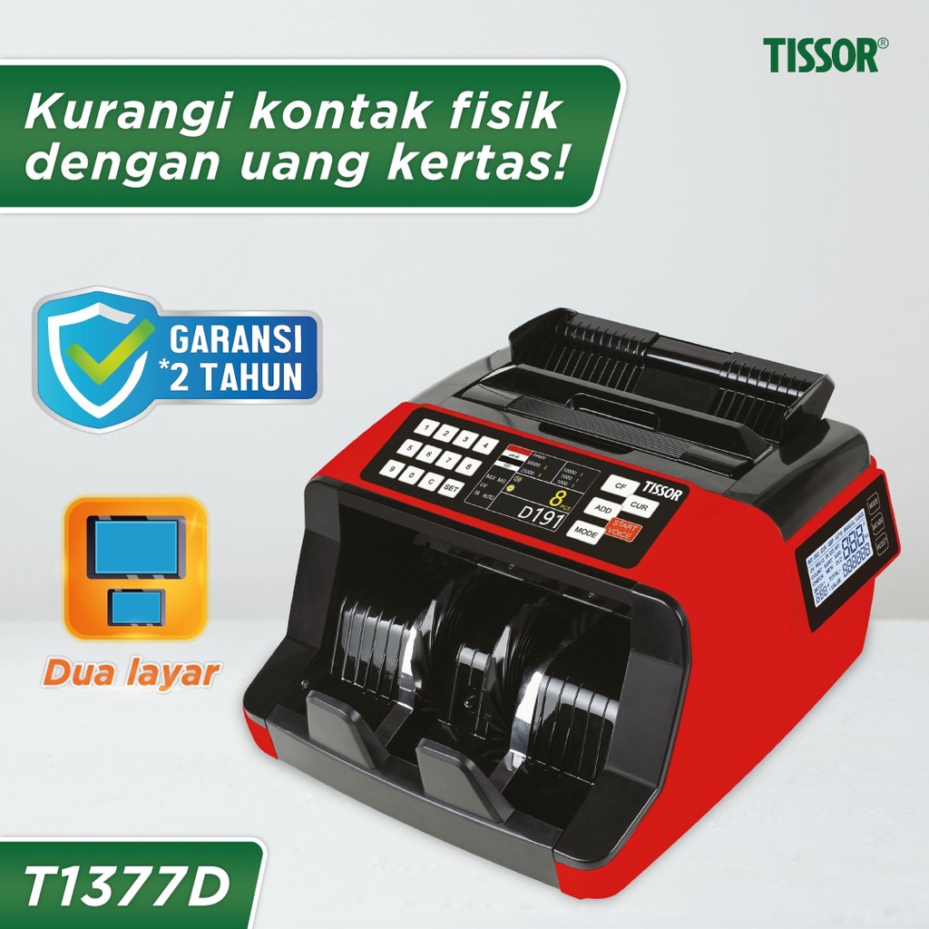 TISSOR - T1377D Money Counter - Mesin Hitung Uang Dual Screen - Deteksi uang palsu UV, MG, MT