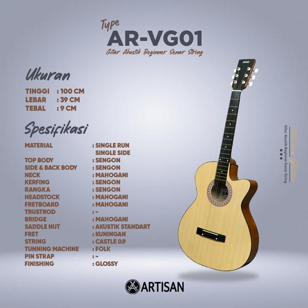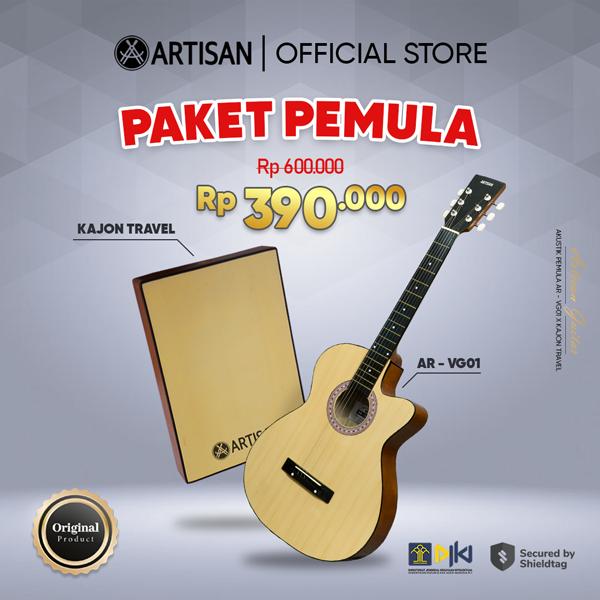 ARTISAN PAKET PEMULA [ GITAR AKUSTIK PEMULA + KAJON TRAVEL ] HARGA LEBIH HEMAT - NATURAL, NATURAL