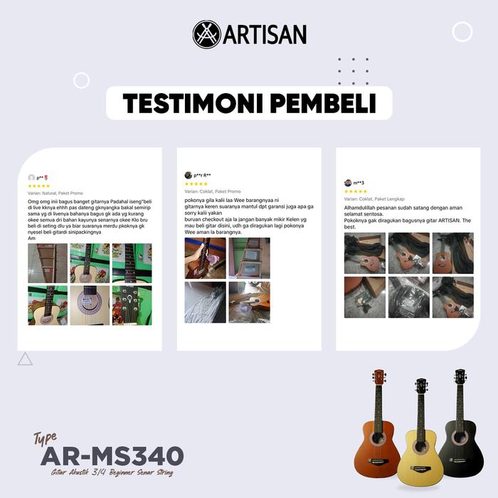 ARTISAN GITAR AKUSTIK 3/4 BEGINNER AR - MS340 SENAR STRING GUITAR - NATURAL, PROMO