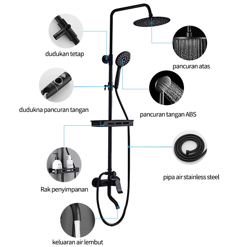 Shower Tiang Set Panas-Dingin/Shower Kamar Mandi 4 Dalam 1 Set Dengan Faucet / Set pancuran tembaga lengkap
