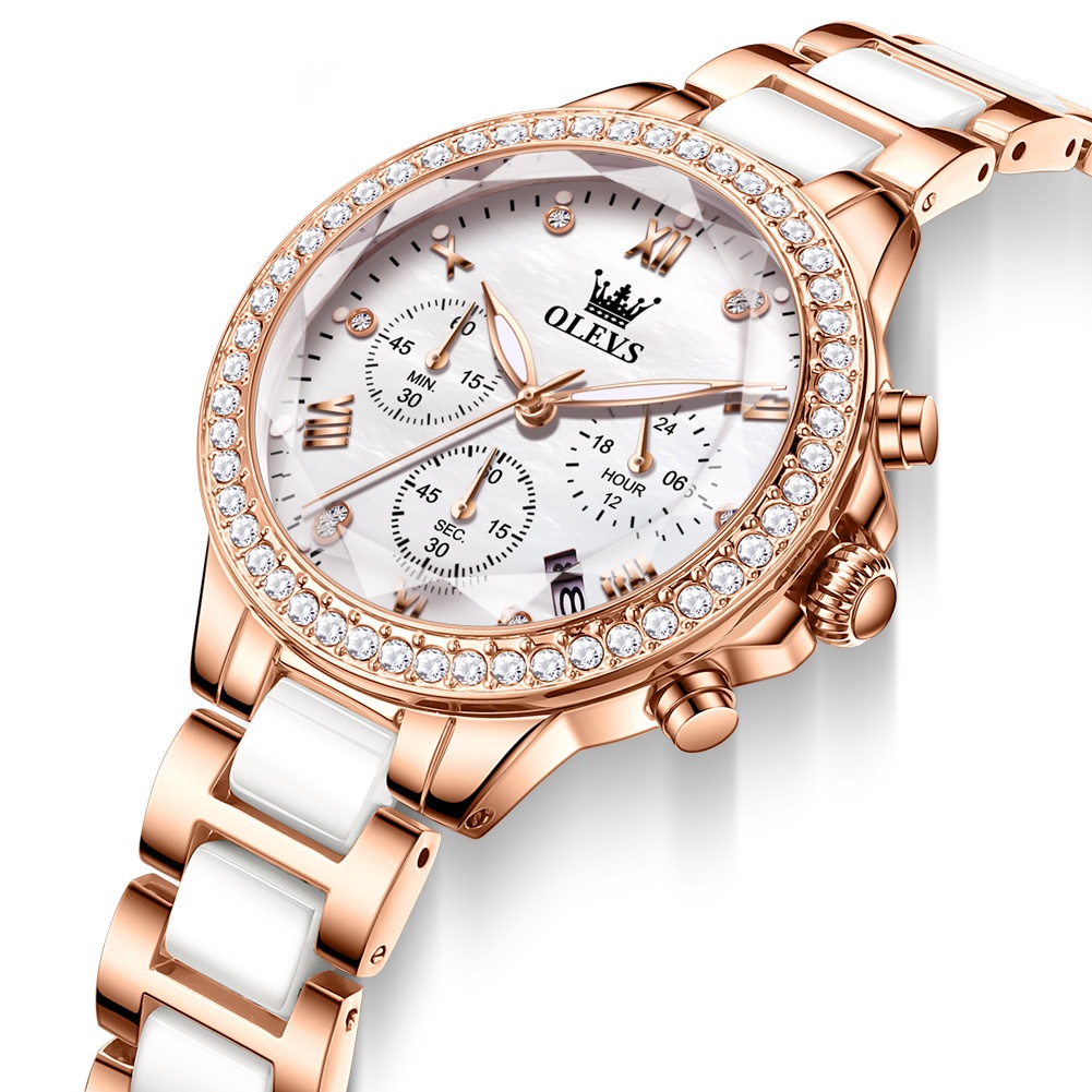 OLEVS Jam Tangan Wanita Anti Air Original Unik Keramik Berlian Stainless Steel Fashion Rose ld Womem Watch el 9999