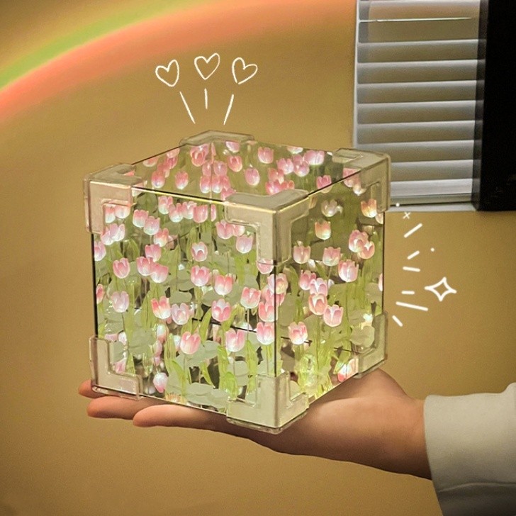 LOZTOYS DIY Tulip Akrilik Lampu Malam Cubus / Bunga Tulp Led Cermin Lampu Dekorasi Tidur Gift