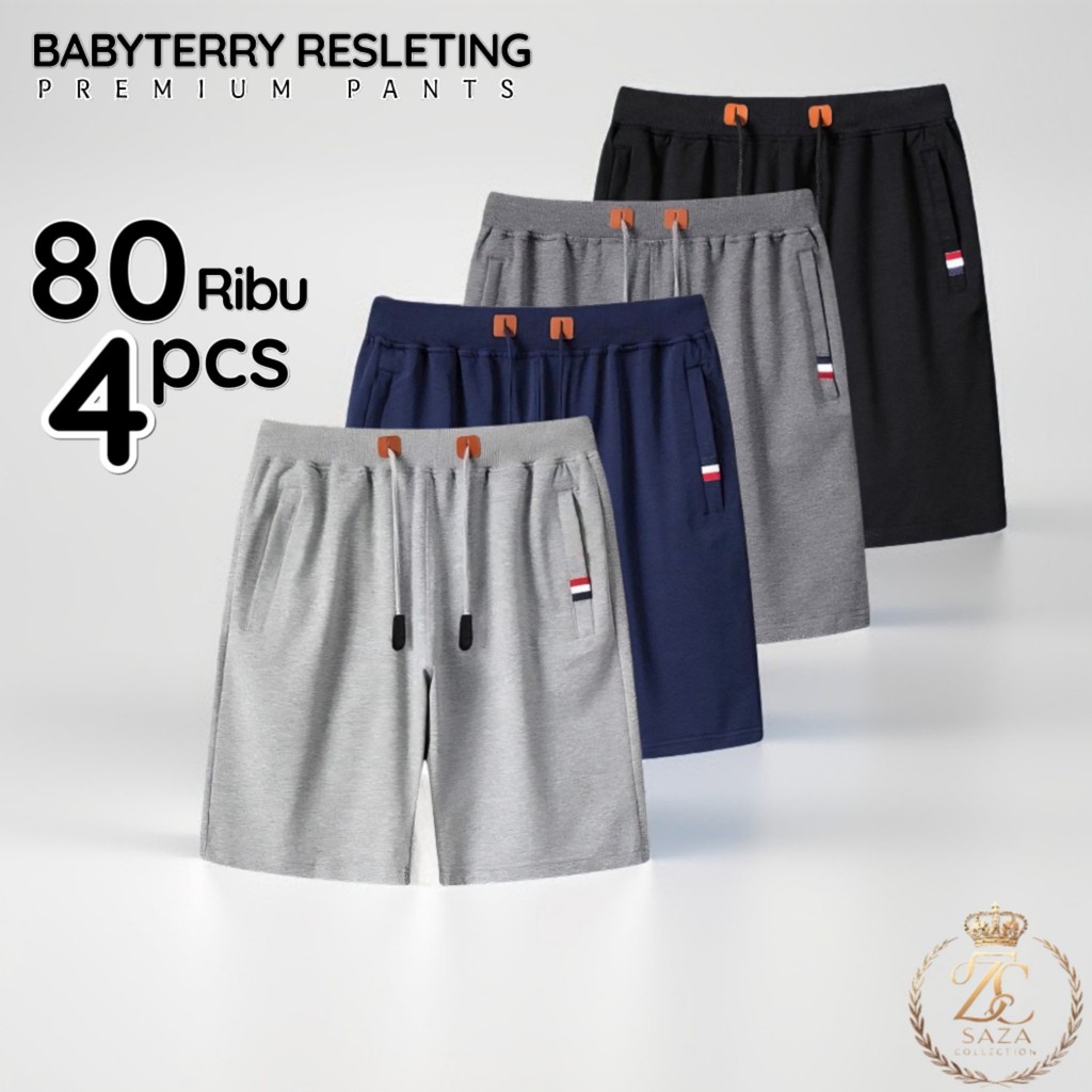 promo 4 pcs celana pendek pria wanita dewasa santai baby terry saku resleting jumbo Murah Gratis Ongkir