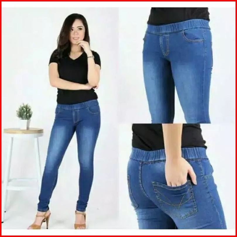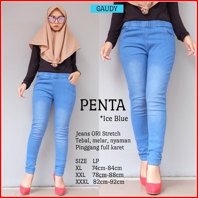 Play Jeans Legging Jeans Jumbo Jeans Pinggang Karet Jumbo Celana Jeans Bigsize