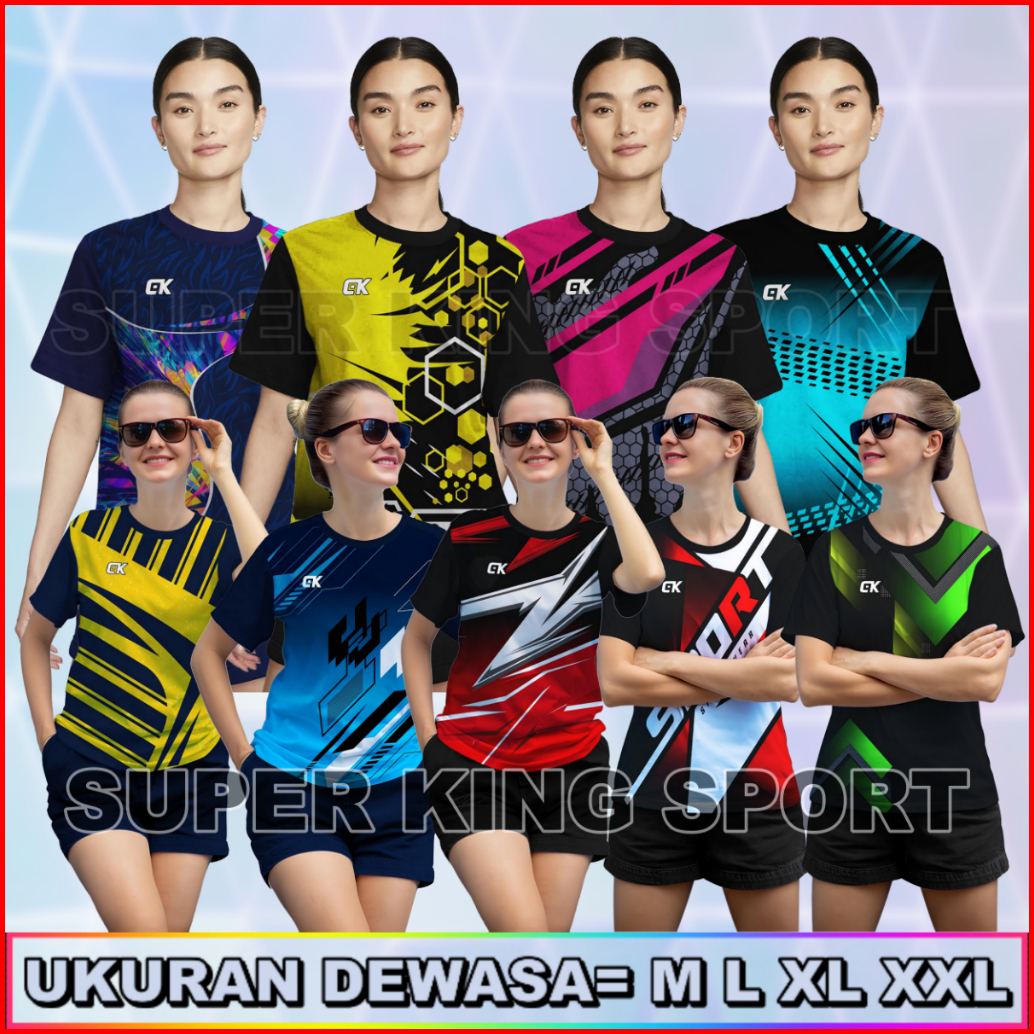 Kaos Olahraga Printing Wanita Volly Badminton Bola Futsal Super King Sport