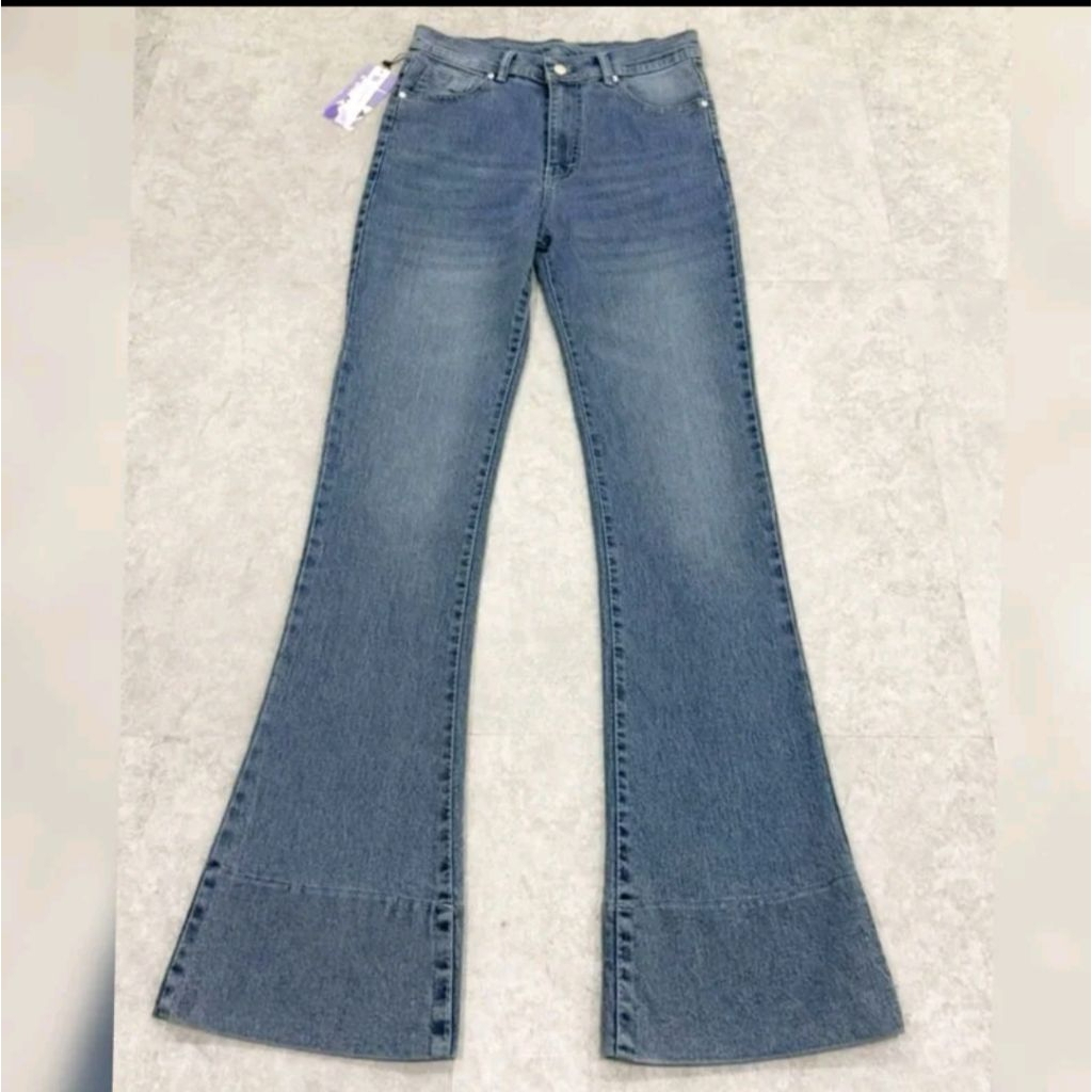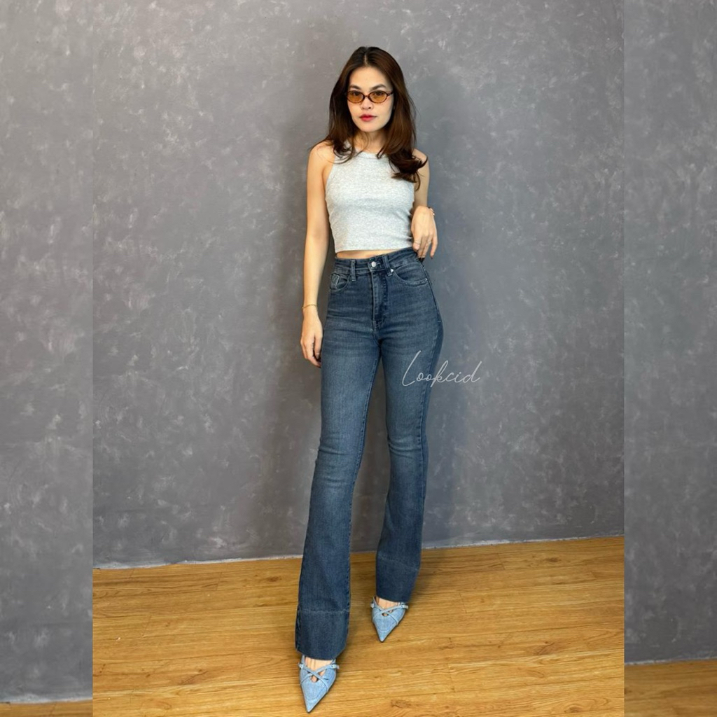 Jennie Cutbray Jeans Highwaist Lipatan Kaki Besar Jeans Non strecht Wanita Murah Gratis Ongkir