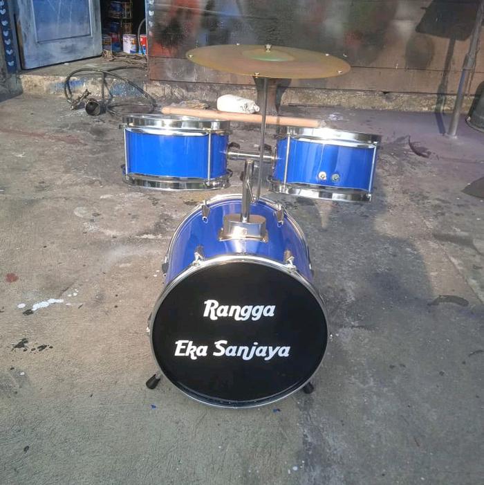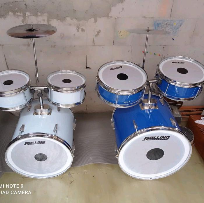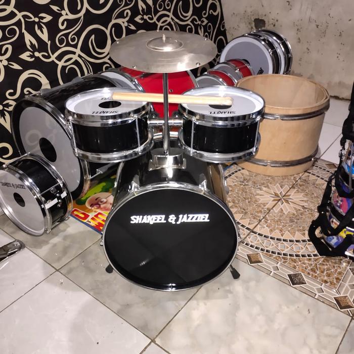 DRUM SET ANAK LENGKAP BESI CHROM & KAYU LAPIS 3MM HEAD 0,15 SUARA OKE COCOK BELAJAR GRATIS STIK - PUTIH, 18 INCH
