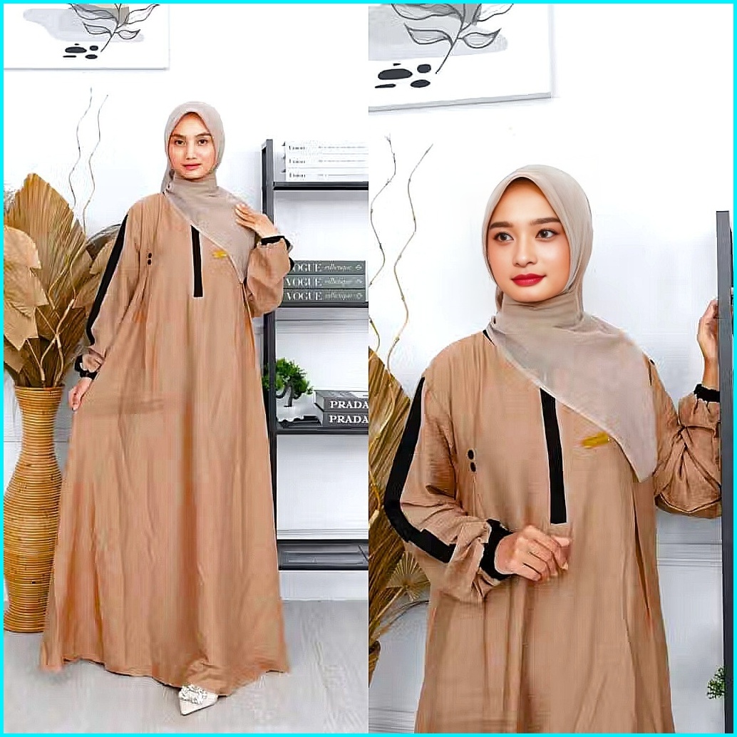 Faiza Dress Gamis Muslim Wanita Polo Linen Polos Busui Cantik Kekinian Gamis Syar I Terbaru