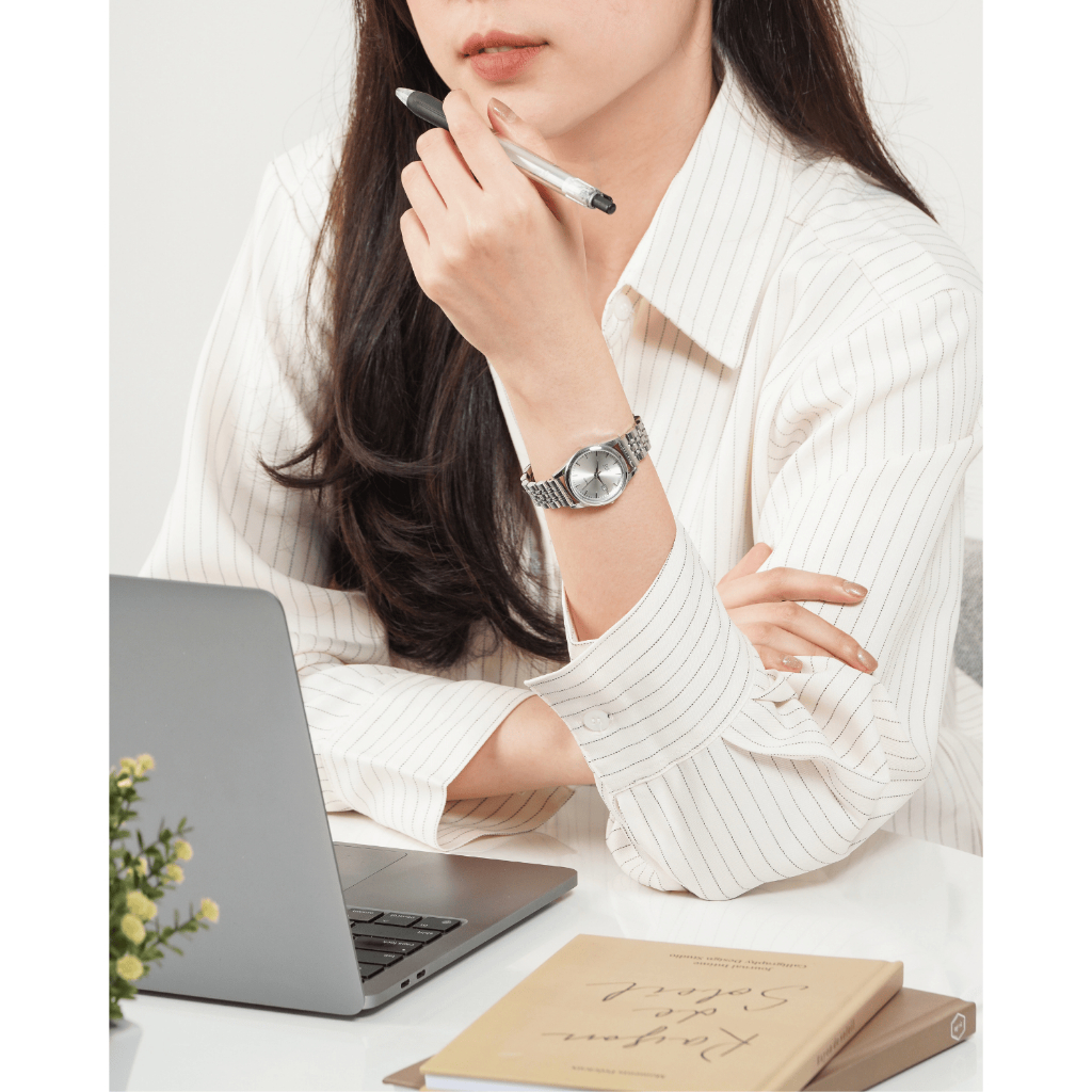 Jam Tangan Wanita Korea Jisu Watch Rantai Kecil Analog Silver Casual Teru Original Anti Air 21015