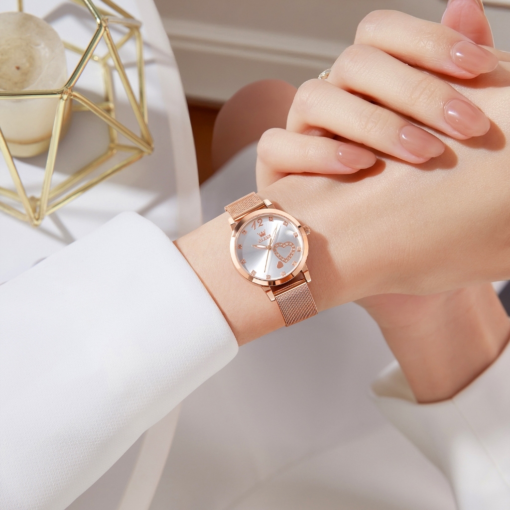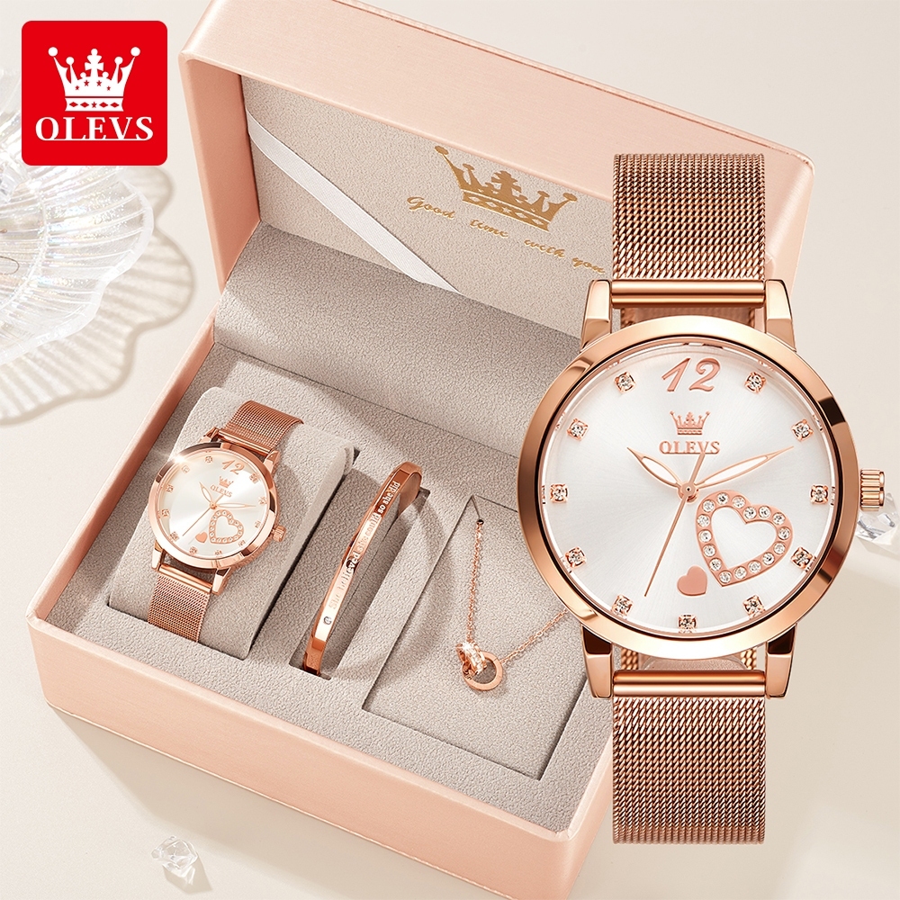 OLEVS Jam Tangan Wanita Anti Air Original Kecil Merah Elegan Women Set Watch