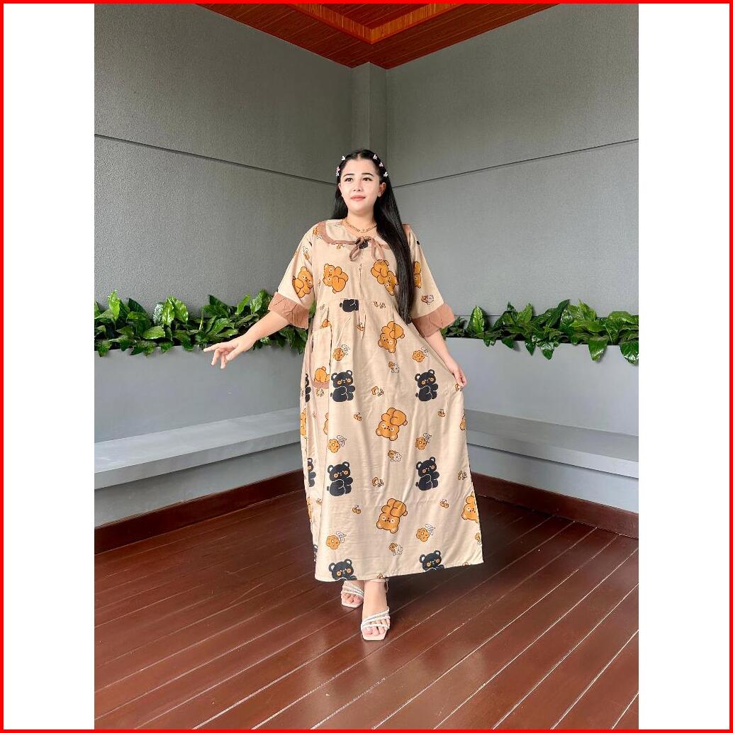 Midi Dress Nadira Bahan Rayon Premium Busui Motif Beruang Cantik Dan Nyaman