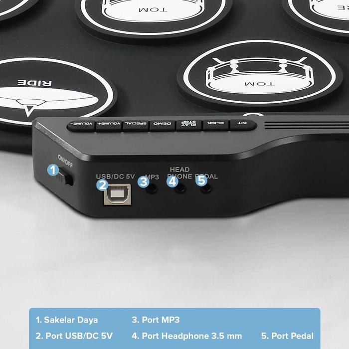 ELECTRONIC DIGITAL DRUM KIT 7 PADS FOLDING USB POWER - G3003