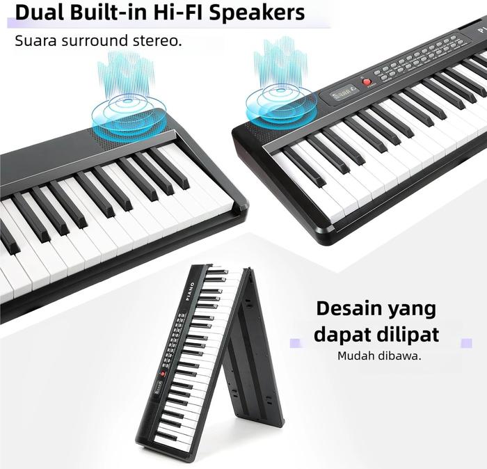 KAWES 61/88 KEY BLUETOOTH ELECTRONIC PIANO MUSIC KEYBOARD DENGAN MIKROFON MUSIKAL KEYBOARD PIANO - 61 KEY HITAM-NO BLUET