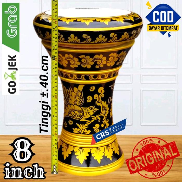 DARBUKA KAYU 8 INCH 60lld5 HITAM MIKA PUTIH - DUMBUK SAJA
