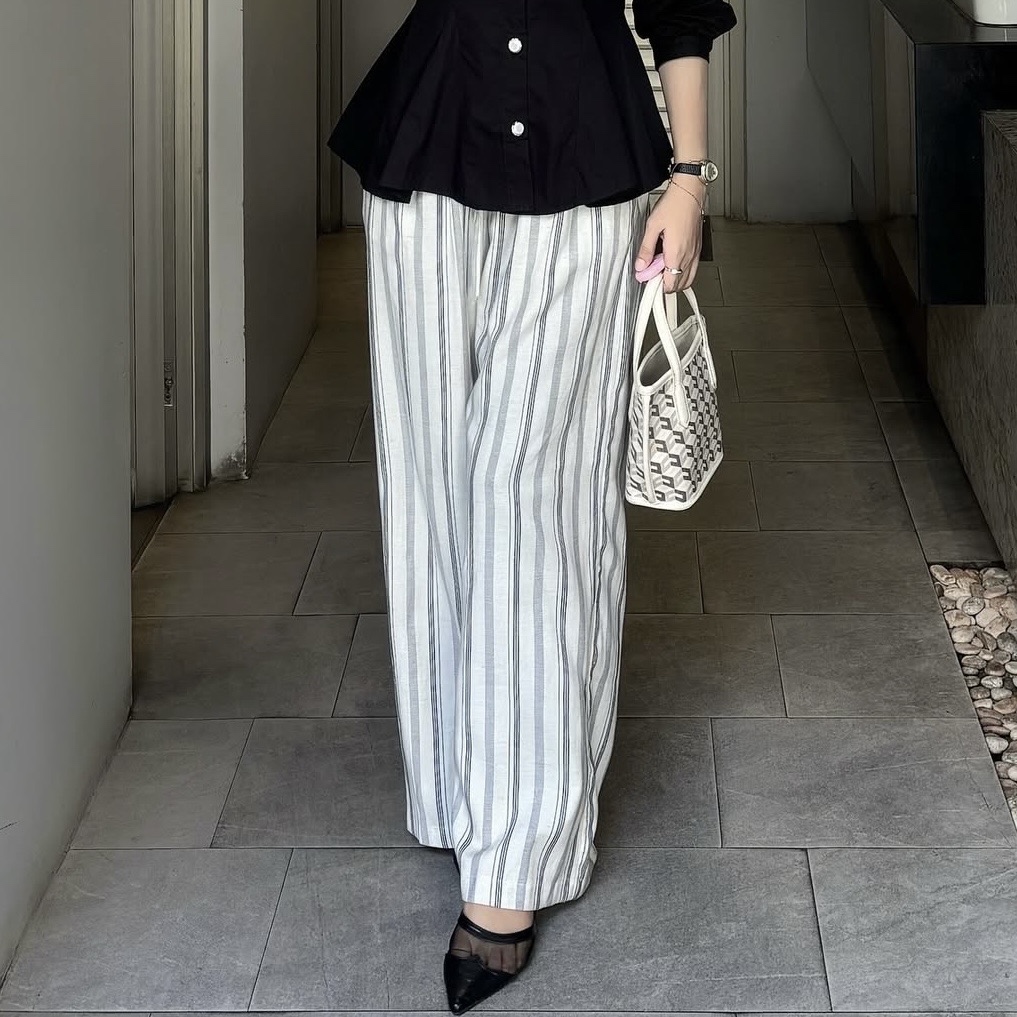 Everyday Stripe Pants - Linen Cotton Celana Panjang Wanita Motif Garis Kulot Pinstripe Cullotes Murah Gratis Ongkir