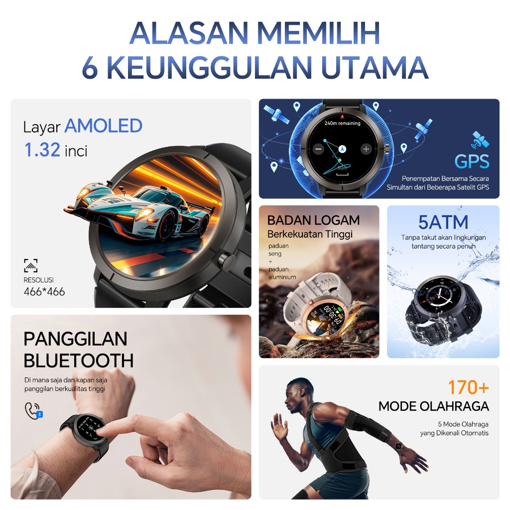 Citijungle GPS AIR Smartwatch Wanita | GPS Multi Sistem | Support Strava | Layar AMOLED 1,32” HD | 5ATM Tahan Air | 360m