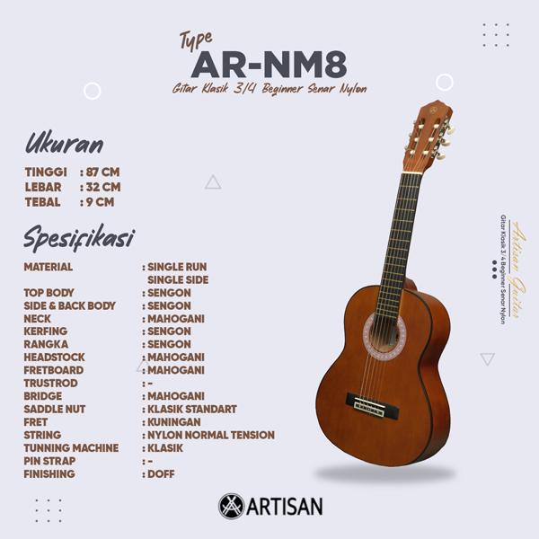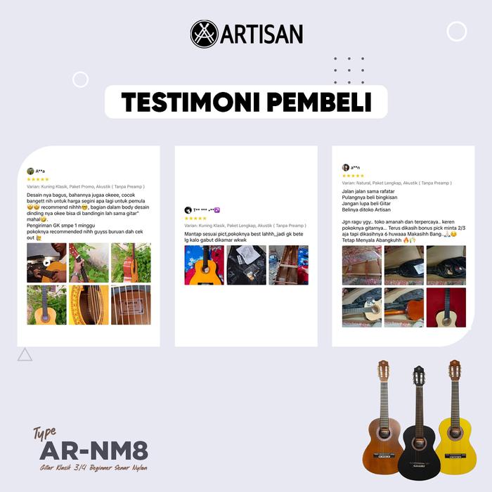 ARTISAN GITAR KLASIK 3/4 BEGINNER AR - NM8 SENAR NYLON GUITAR - KUNING KLASIK, PROMO