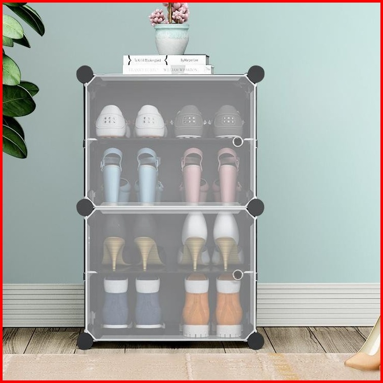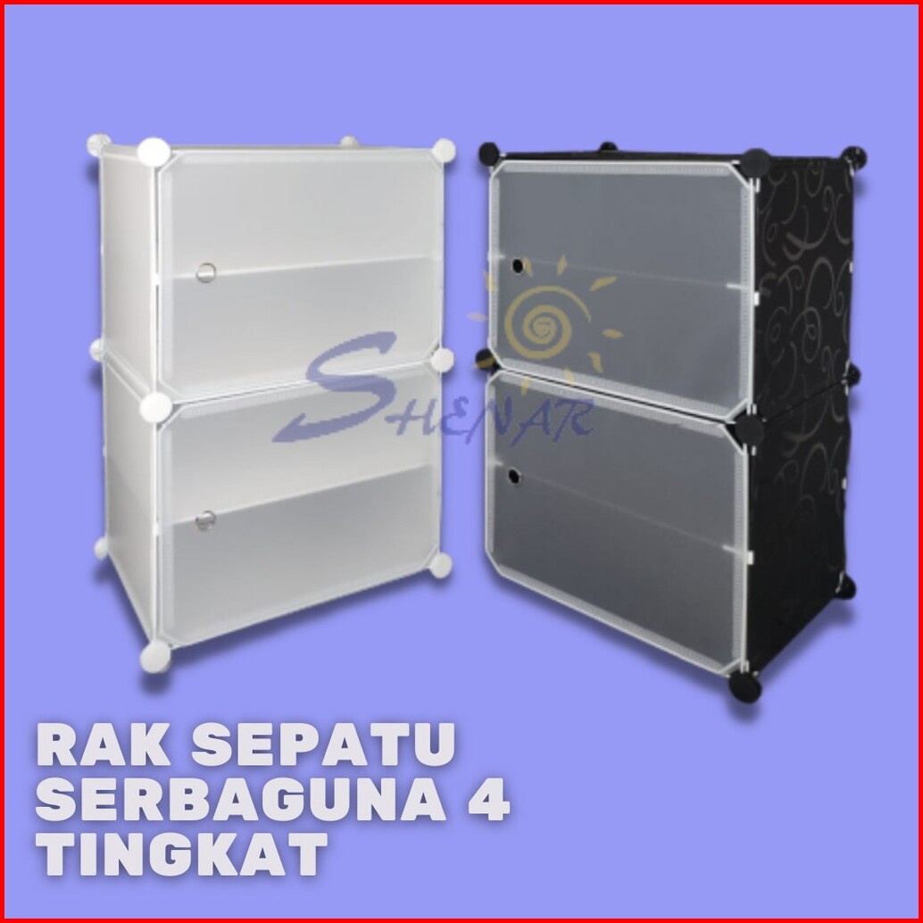 2kg Shenar Rak Anti Debu 4 Layer Rak Sepatu Serbaguna 4 Tingkat Kotak Sepatu Portable Rak Sepatu Tingkat Rak Sepatu Tutu